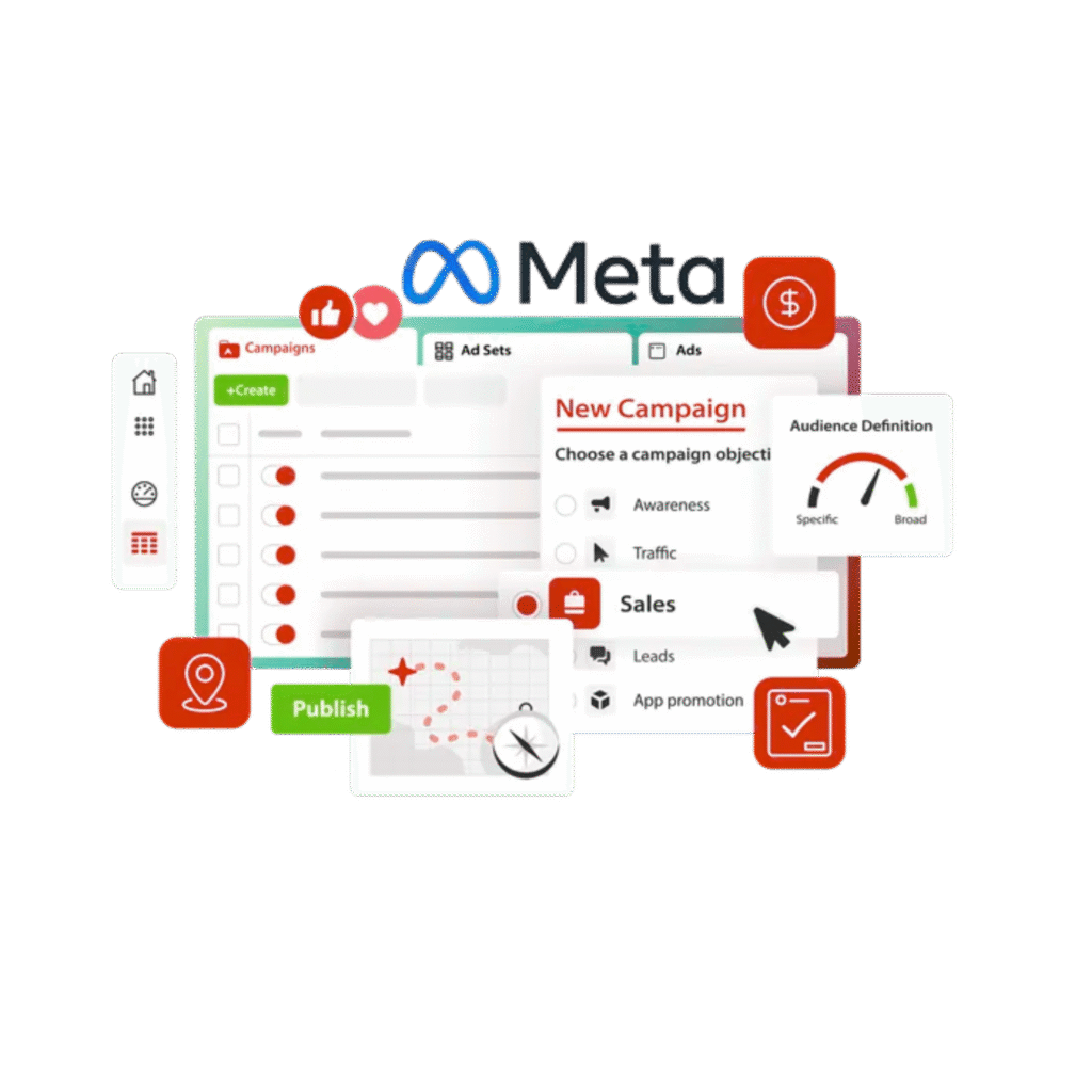 We craft strategic and data-driven Meta Ads campaigns that help businesses connect with their ideal audience across Facebook, Instagram, and the entire Meta platform. Our approach combines creative storytelling with advanced targeting to drive meaningful engagement, qualified leads, and real conversions.